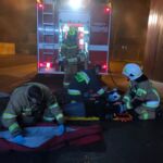 Następnie przystąpiliśmy do części praktycznej, która składała się z dwóch epizodów. Pierwszy scena zakładała pożar hali oraz jedną osobę poszkodowaną znajdującą się wewnątrz obiektu. Działaniem zastępów było znalezienie osoby poszkodowanej, udzielenie jej kwalifikowanej pierwszej pomocy, sprawdzeniu budynku za pomocą kamery termowizyjnej oraz oddymienie pomieszczenia.