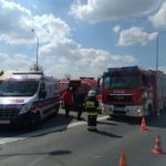 18.04.2019 po godzinie 13:00 zostaliśmy zadysponowani do wypadku drogowego na skrzyżowaniu ul. Cegielnianej z obwodnicą Gdowa. Po przybyciu na miejsce zdarzenia okazało się, że doszło do czołowo-bocznego zderzenia dwóch samochodów osobowych. W wyniku wypadku jedna osoba została zabrana do szpitala.
