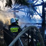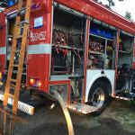 W pierwszej kolejności nasi druhowie przystąpili do udzielenia kwalifikowanej pierwszej pomocy osobie poszkodowanej, do której zostało zadysponowane pogotowie. Jednocześnie ratownicy w aparatach ochrony układu oddechowego gasili pożar oraz bronili sąsiadujący budynek mieszkalny przed rozprzestrzenieniem się ognia. Następnie zbudowano zasilanie wodne ze znajdującego się nieopodal hydrantu, które pozwoliło na podanie kolejnych dwóch prądów wody bezpośrednio w miejsce pożaru.