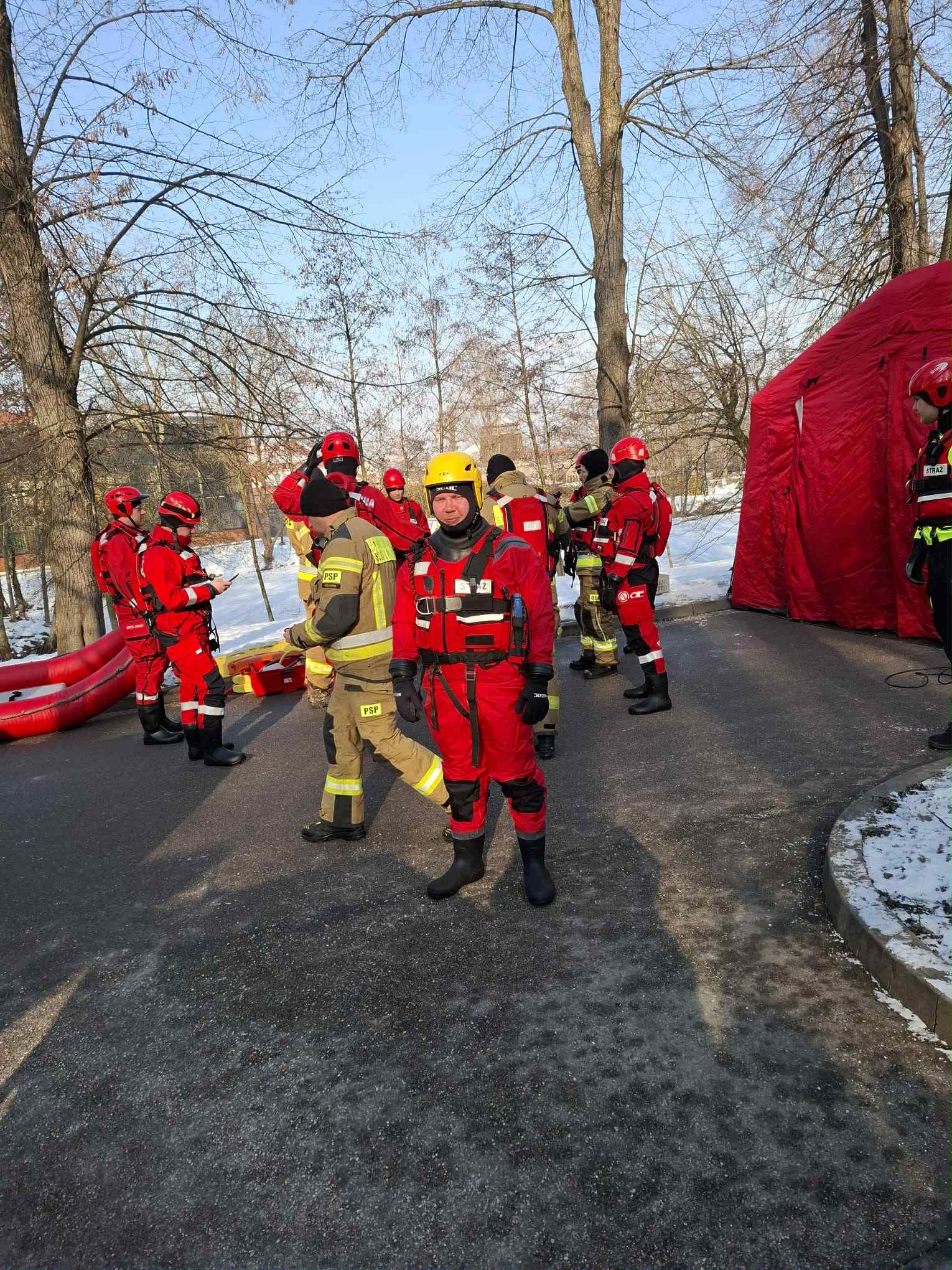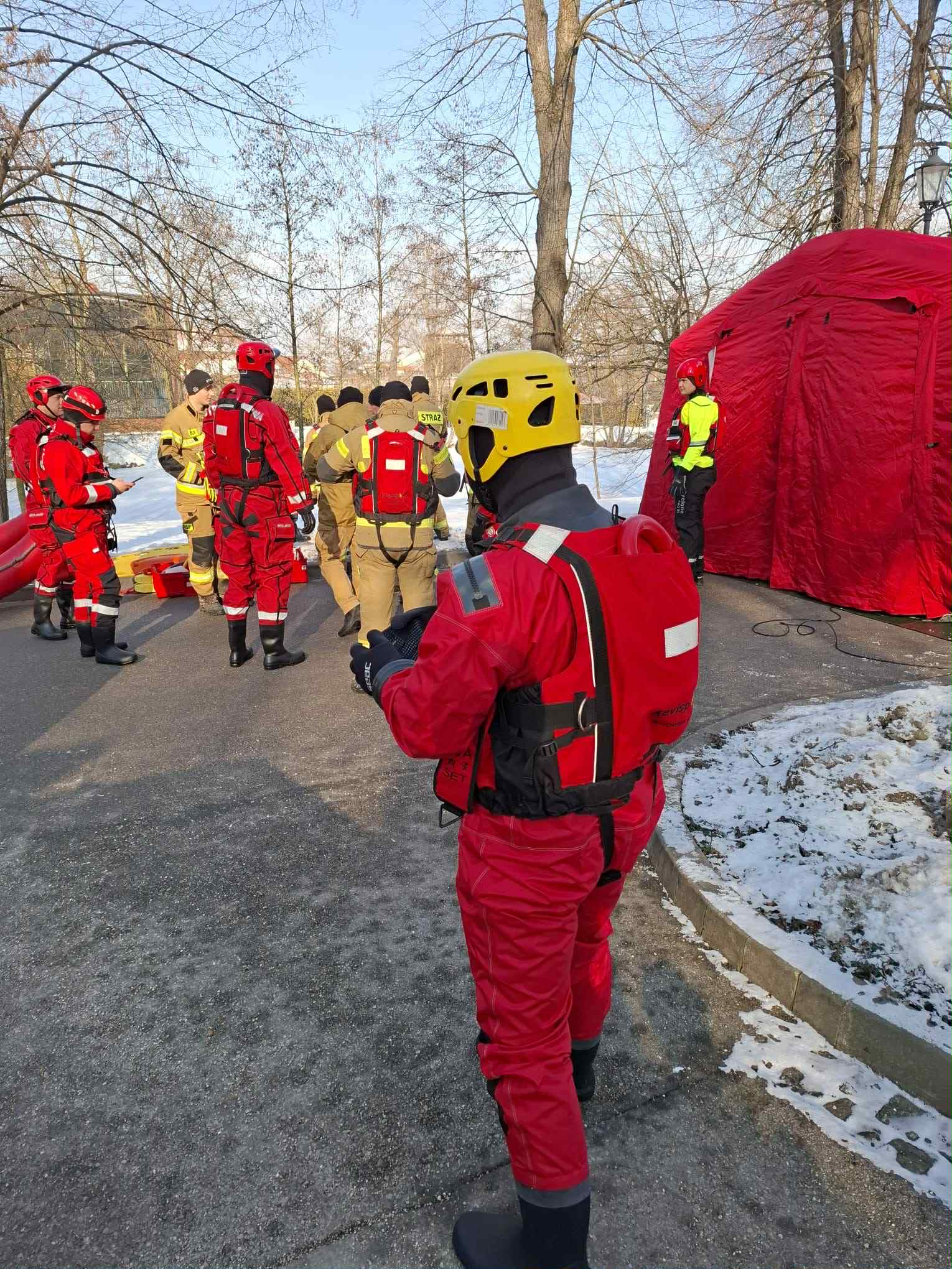 W poniedziałek w Wieliczce odbyło się szkolenie z ratownictwa lodowego. W tym czasie strażacy doskonalili techniki ratowania osób, pod którymi załamał się lód. Ćwiczenia obejmowały również prace z rzutką, poruszanie się po lodzie, ewakuację poszkodowanego oraz współpracę zespołową w trudnych warunkach zimowych. Takie szkolenia to podstawa bezpieczeństwa — zarówno ratowników, jak i osób potrzebujących pomocy. W szkolenie wzięli udział strażacy z OSP Zabierzów Bocheński, OSP Brzegi - Grupa Ratownictwa Wodno-Nurkowego, Ochotnicza Straż Pożarna w Kłaju