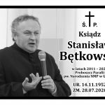 Ks. Stanisław Bętkowski urodził się 14 listopada 1952 roku w Zakliczynie. Święcenia kapłańskie przyjął 22 maja 1983. Pracował: w Przeciszowie, Jaworznie, Krakowie - Bieńczycach, Wieliczce, Krakowie - Prokocimiu i Łączanach. Od 2011 roku był proboszczem w naszym Sanktuarium Matki Bożej Gdowskiej. Zmarł 28 lipca ubiegłego roku po krótkiej, ale ciężkiej chorobie. Trumna z jego ciałem spoczęła na cmentarzu parafialnym w Zakliczynie koło Dobczyc.