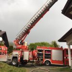 Wczoraj(29.04.2020) w godzinach popołudniowych nad naszym terenem przeszła burza z intensywnym deszczem oraz wyładowaniami atmosferycznymi. Niestety burza okazała się bardzo groźna w skutkach. Około godziny 16:40 do Stanowiska Kierowania KP PSP w Wieliczce wpłynęło zgłoszenie o pożarze dachu budynku mieszkalnego w Gdowie na ulicy Grzybowskiej. W pierwszej kolejności zadysponowano dwa zastępy z naszej jednostki oraz dwa zastępy z JRG Wieliczka. Po przyjeździe na miejsce zdarzenia i rozpoznaniu sytuacji przez Kierującego Działaniami Ratowniczymi potwierdzono zgłoszenie, a ogień wydostawał się już na zewnątrz. W pierwszej fazie działań odłączono media od budynku mieszkalnego. W dalszej części pożaru podano początkowo jeden prąd wody w natarciu z ziemi, a następnie ze względu na brak dojścia od strony wewnętrznej została rozłożona drabina ratownicza, z której podano drugi prąd wody. Po przybyciu na miejsce zdarzenia zastępu SH 25 Volvo z JRG Wieliczka podjęto decyzję o gaszeniu pożaru przy pomocy podnośnika. Po całkowitym ugaszeniu pożaru rozpoczęły się pracy związane z wykonaniem rozbiórki części dachu w miejscach powstania pożaru. Całość została dodatkowo sprawdzona za pomocą kamery termowizyjnej. W działaniach brały udział dwa zastępy z naszej jednostki oraz JRG Wieliczka, a także zastępy z OSP w Kunicach, Marszowicach, Bilczycach. Akcja została zakończone po 3 godzinach. Na miejscu obecna była również policja. Prawdopodobną przyczyną pożaru było uderzenie pioruna.